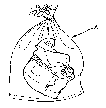 13. Dispose of the complete airbag. No part of it can be reused. Place it in a sturdy plastic bag (A), and seal it securely. Dispose of the deployed airbag according to your local regulations.