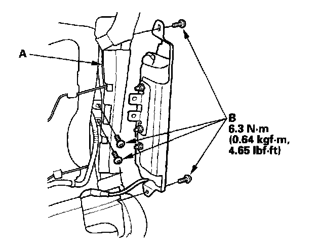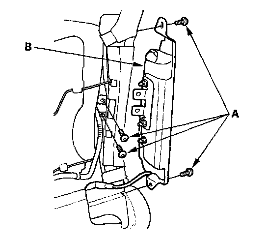 4. Remove the mounting bolts (A) and the side airbag (B).