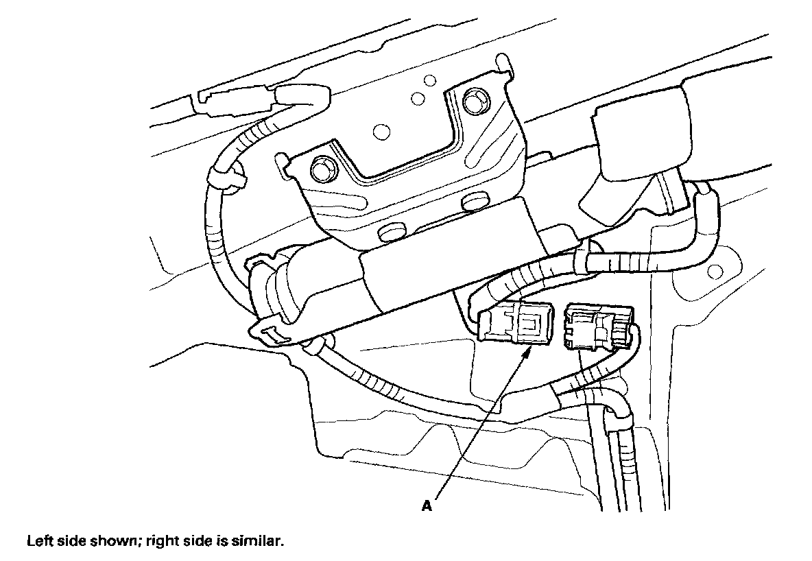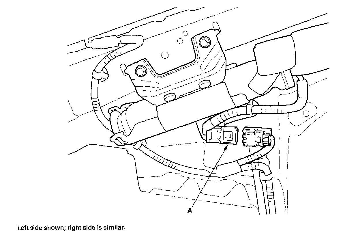 3. Disconnect the side curtain airbag 2P connector (A) from the floor wire harness.
