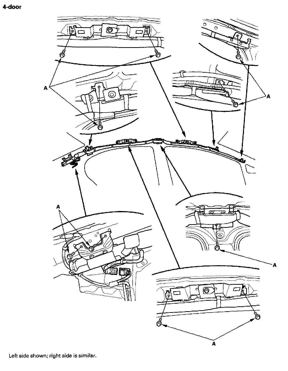 - Removal of the side curtain airbag must be performed according to the precautions/procedures described at the beginning of the SRS section.