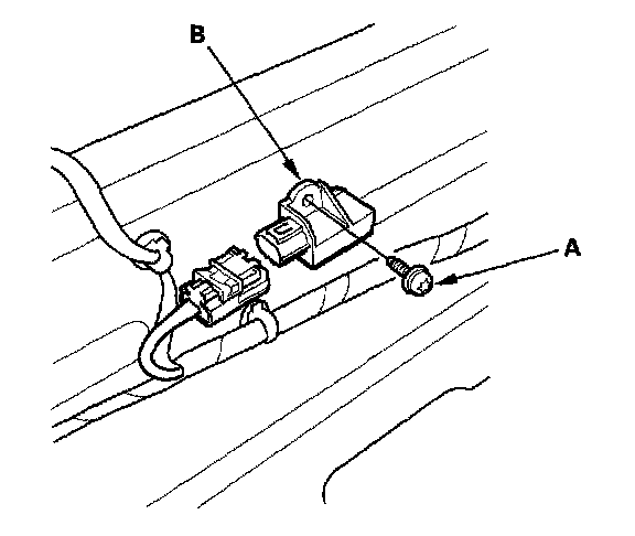 5. Using a Torx T30 bit, remove the Torx bolt (A), then remove the rear safing sensor (B).