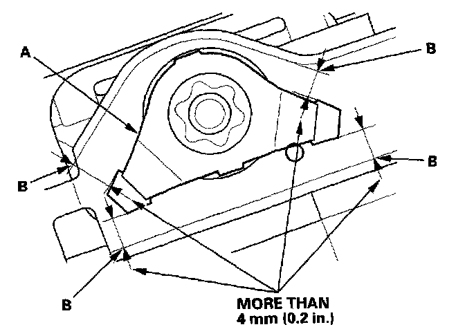 5. Make sure the gap between the spring washer (A) and the seat track (B) is more than 4 mm, as shown.