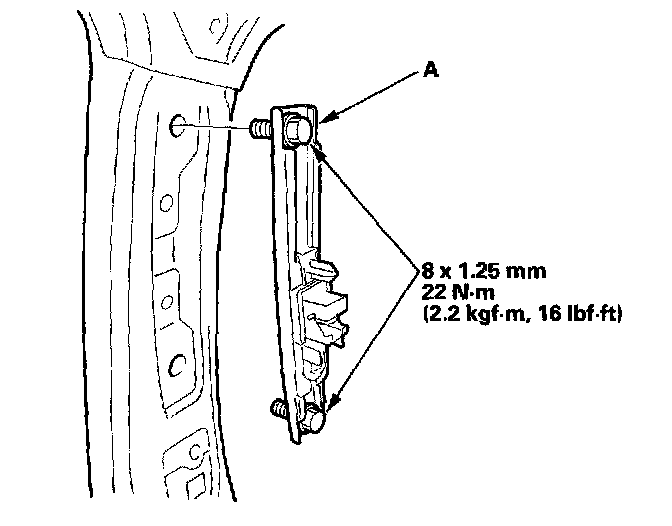 2. Remove the lower anchor bolt (A), then remove the lower anchor (B).