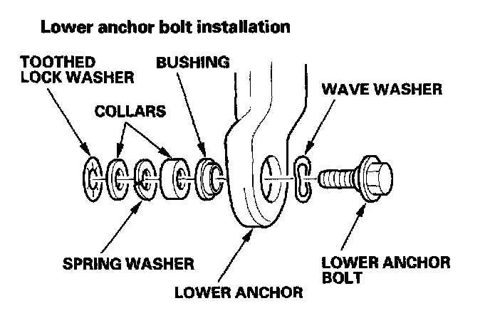 - Assemble the washers, collars, and bushing on the lower anchor bolt as shown.