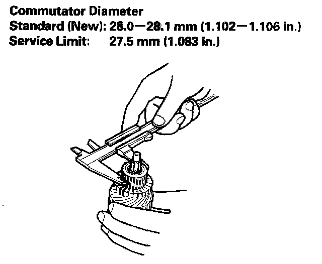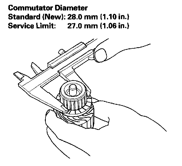 5. Check the commutator diameter. If the diameter is below the service limit, replace the armature.