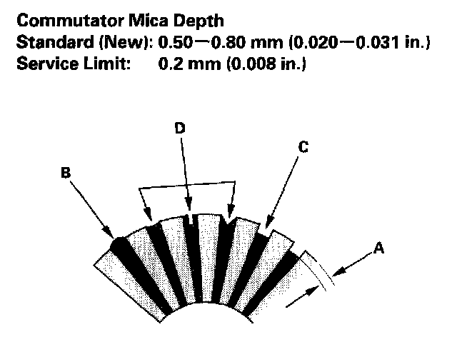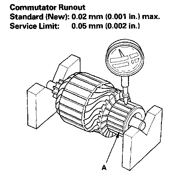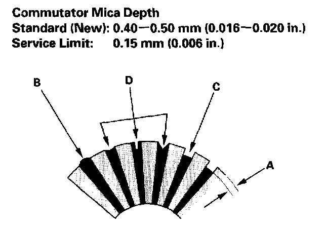 - If the commutator runout is within the service limit, check the commutator for carbon dust or brass chips between the segments.
