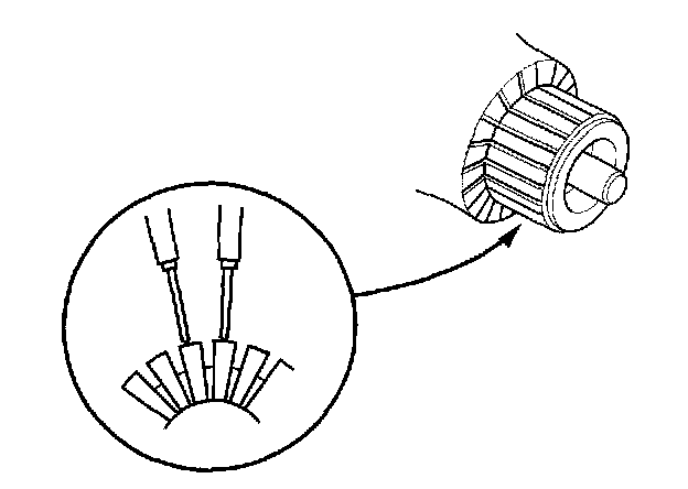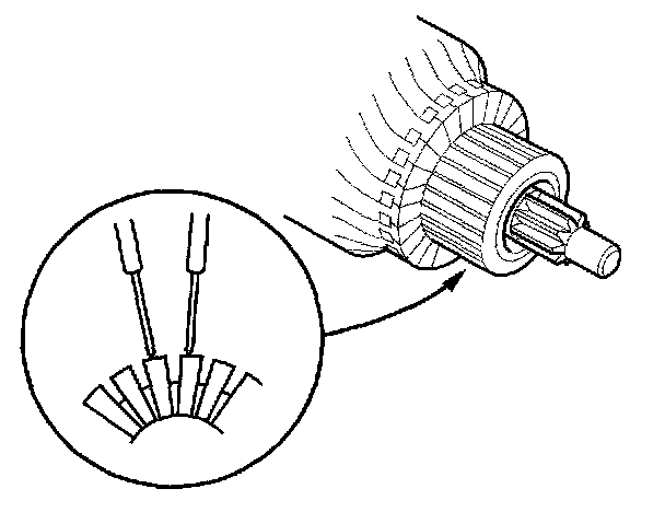8. Check for continuity between the segments of the commutator. If there is an open circuit between any of the segments, replace the armature.