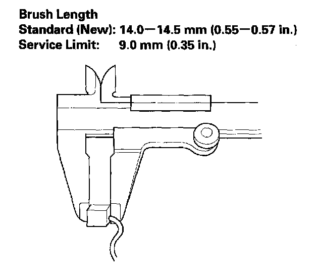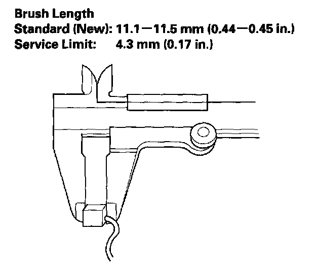 11. Measure the brush length. If it is shorter than the service limit, replace the brush holder assembly.