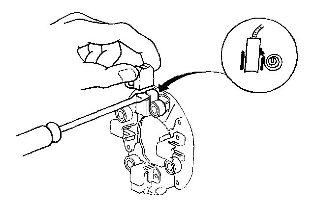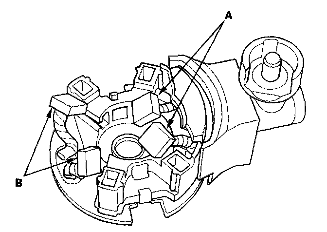 12. Check for continuity between the (+) brush (A) and (-) brush (B). If there is continuity, replace the brush holder assembly.