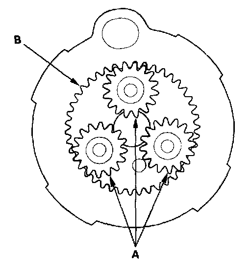 13. Check the planetary gears (A) and ring gear (B). Replace them if they are worn or damaged.