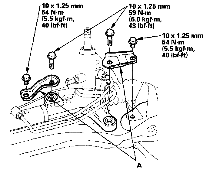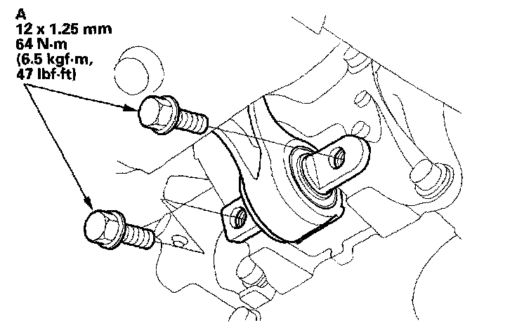 11. Install the lower torque rod bracket bolts (A), and tighten to the specified torque.