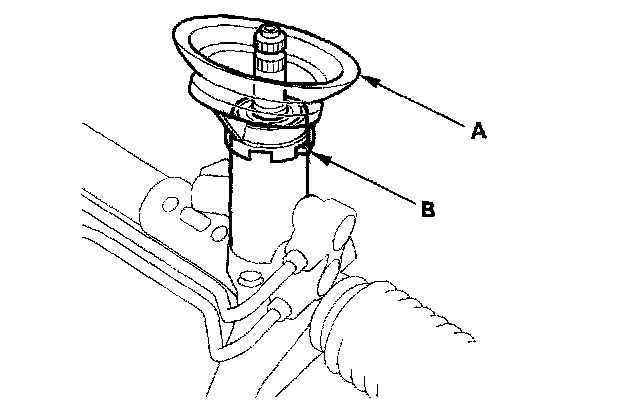 6. Install the pinion shaft grommet (A). Align the slot in the pinion shaft grommet with the lug portion (B) on the valve housing. The grommet must not have a gap at the mating surface of the grommet and valve housing.