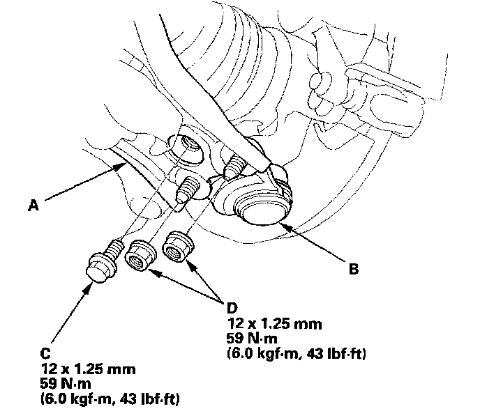 14. Connect the lower arm (A) to the lower ball joint (B).