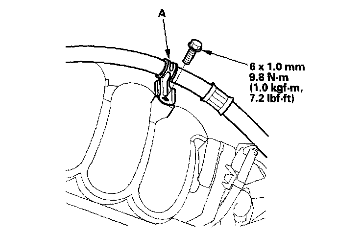 32. Install the air cleaner housing mounting bracket (A) on the cylinder head.