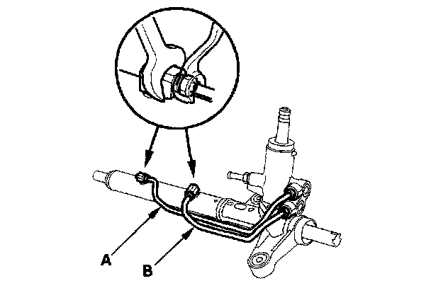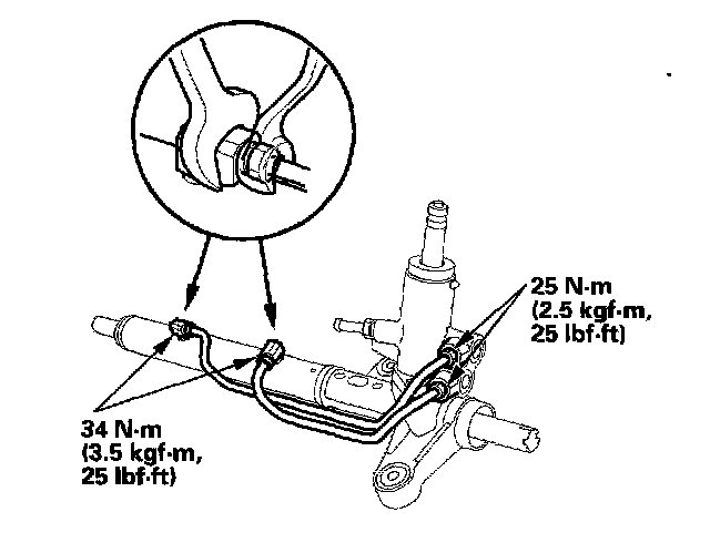9. Drain the fluid from the cylinder fittings by slowly moving the steering rack back and forth.