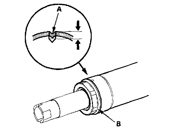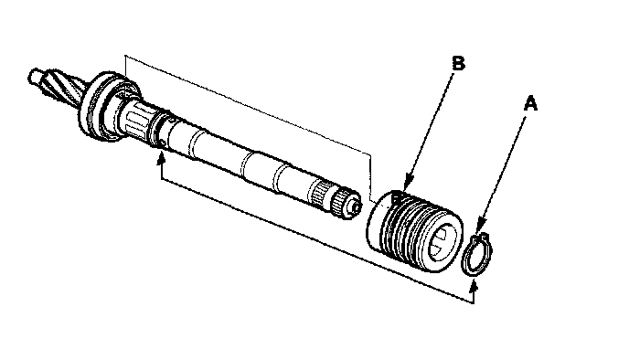 24. Remove the snap ring (A) and sleeve (B) from the pinion shaft.