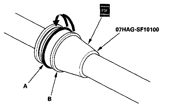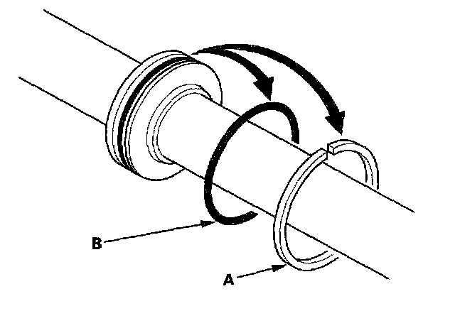 52. Position the new O-ring (A) and new piston seal ring (B) on the special tool, then slide them down toward the big end of the tool.