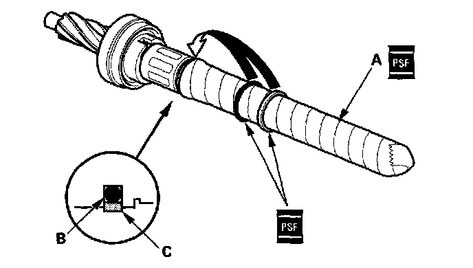 34. Apply vinyl tape (A) to the splines and stepped portion of the shaft, and coat the surface of the vinyl tape with power steering fluid.
