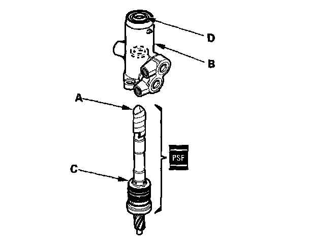 48. Insert the pinion shaft into the valve housing (B). Be careful not to damage the valve seal rings (C) and valve oil seal sealing lip (D).