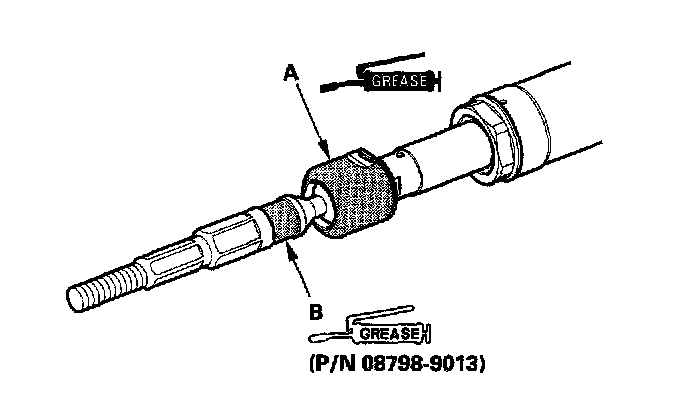 84. Apply a light coat of silicone grease (P/N 087989013) to the boot grooves (B) on the rack end.