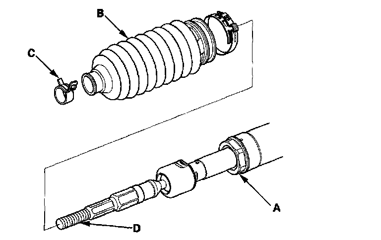 87. After installing the boots, wipe the grease off the threaded section (D) of the rack end.