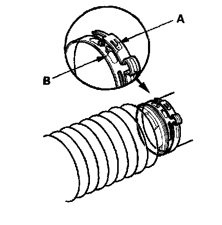 88. Install the new boot bands by aligning the tabs (A) with the holes (B) of the band.