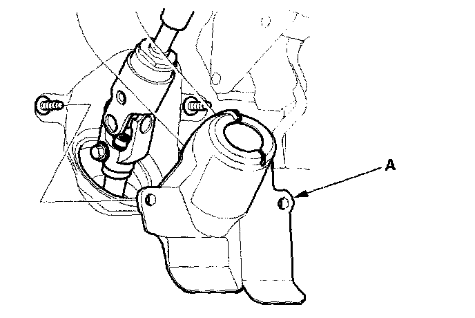 36. Remove the four 10 mm flange bolts from the left side of the steering gearbox, then remove the stiffener plates (A).