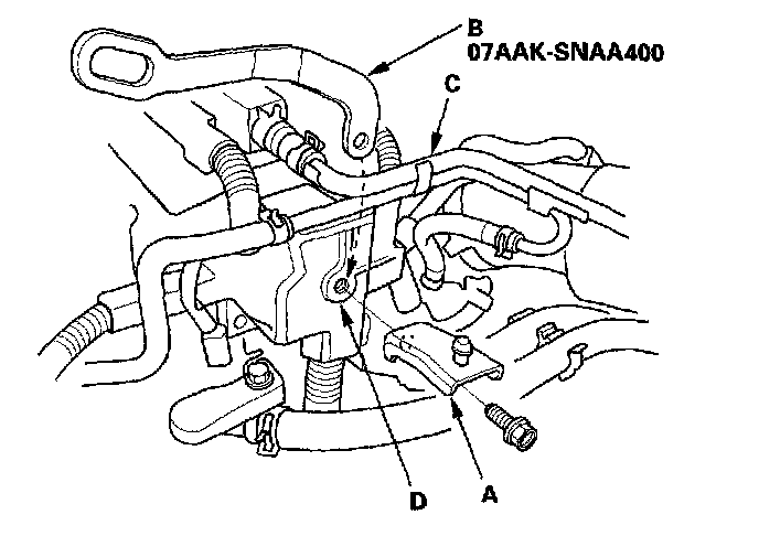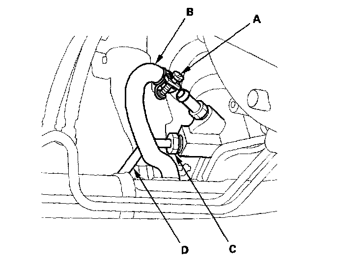21. Loosen the 18 mm flare nut (C), and disconnect the inlet line (D).