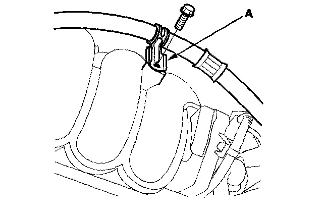 18. Remove the pump outlet hose clamp (A) from the intake manifold.