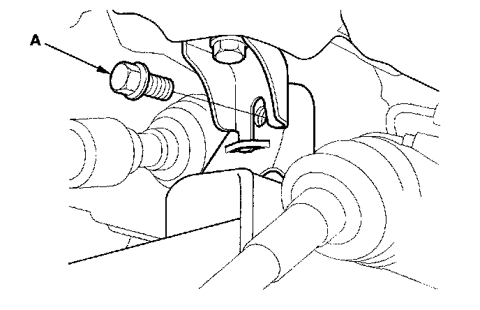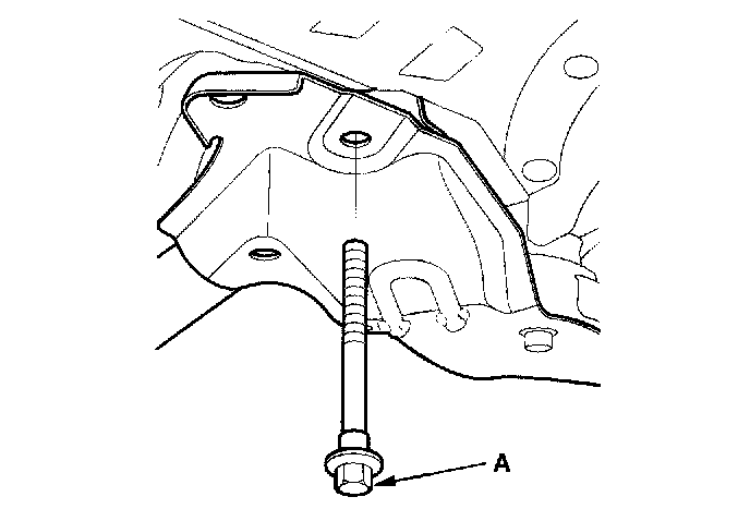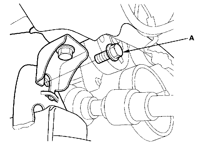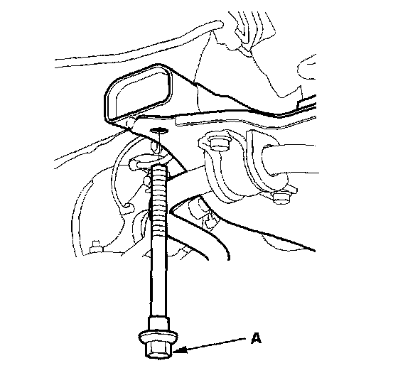 29. Remove the front subframe middle mount bolt (A) from the right side.