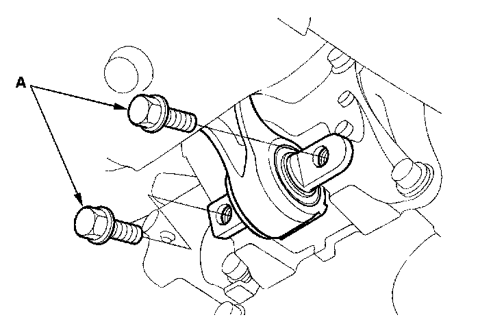 30. Remove the two 12 mm flange bolts (A) from the lower torque rod bracket.