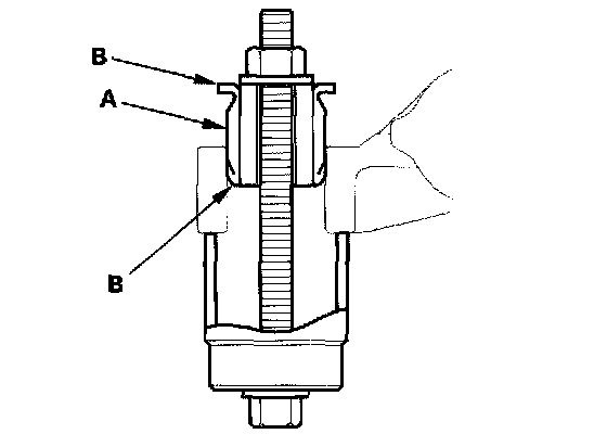 6. Install the gearbox mount cushion by tightening the nut until the mount cushion edges (B) properly fit on the gearbox flange surface.