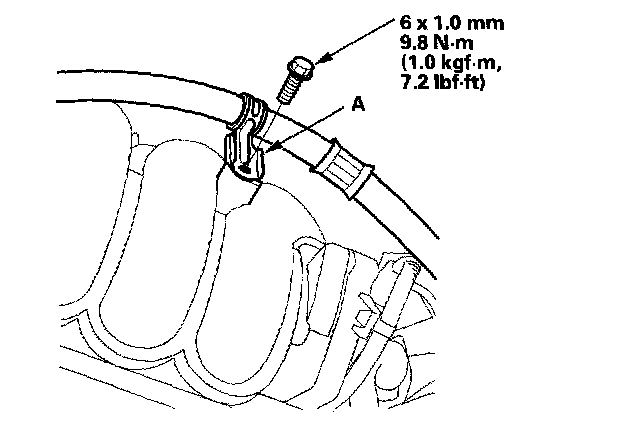 3. Remove the pump outlet hose clamp (A) from the intake manifold.