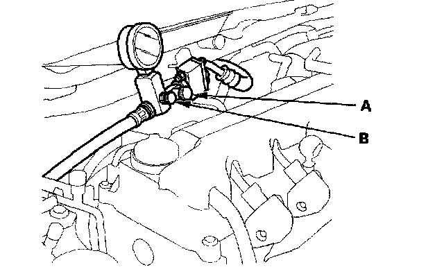 12. Measure steady-state fluid pressure while the engine is idling. If the pump is in good condition, the gauge should be no more than 1,470 kPa (15 kgf/cm2, 213 psi). If it reads higher, check for: