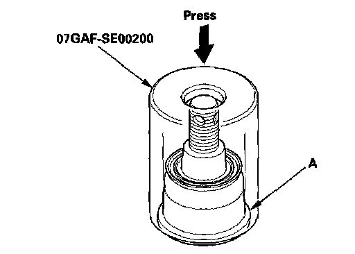 6. Press the boot with the special tool until the bottom seats on the lower ball housing (A) all the way around.