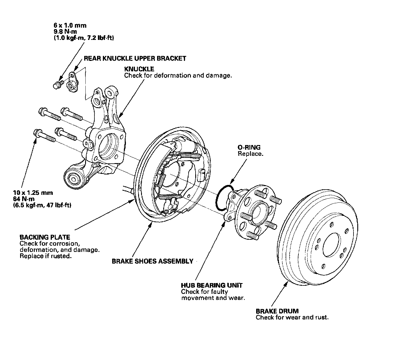 ^ Before installing the brake drum, clean the mating surface of the hub bearing unit and the inside of the brake drum.