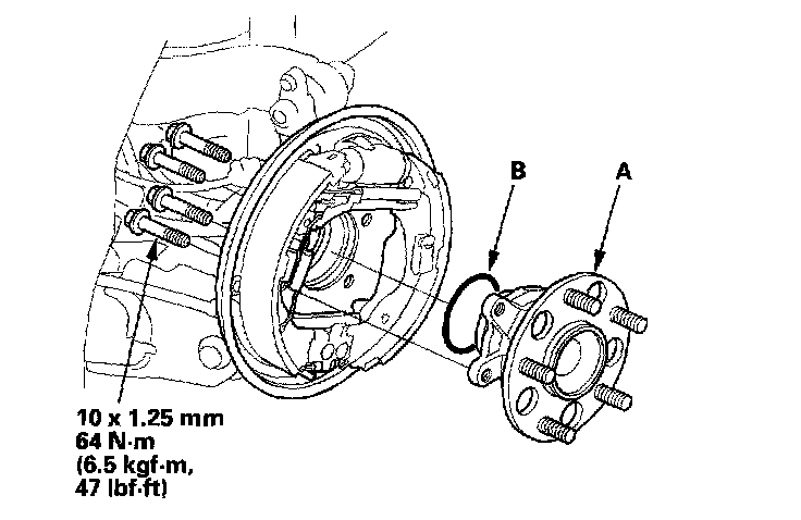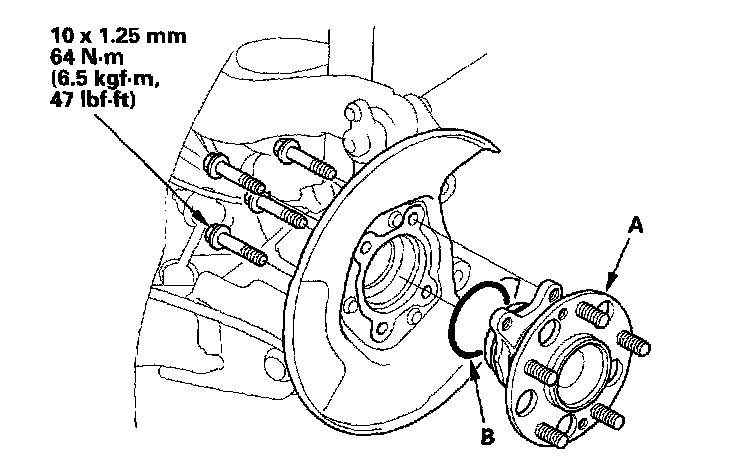 8. Remove the hub bearing unit (A) and the O-ring (B).