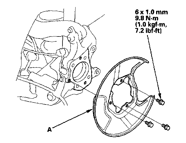 3. Remove the brake hose bracket mounting bolt (A) from the knuckle.