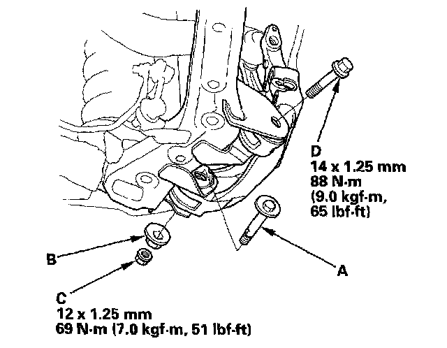 ^ First install all the suspension components, and lightly tighten the bolts and nuts, then place a floor jack under the lower arm, and raise the suspension to load it with the vehicle's weight before fully tightening the bolts and nuts to the specified torque values.