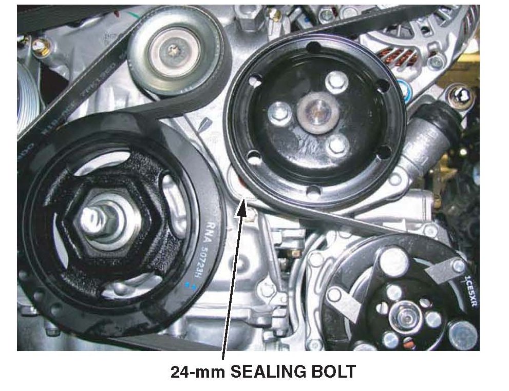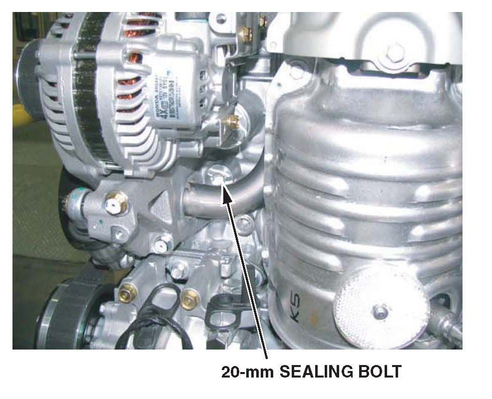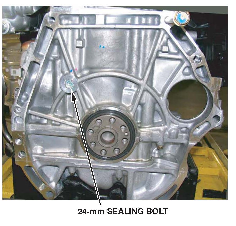 ^ The 24-mm sealing bolt on the transmission end of the engine.