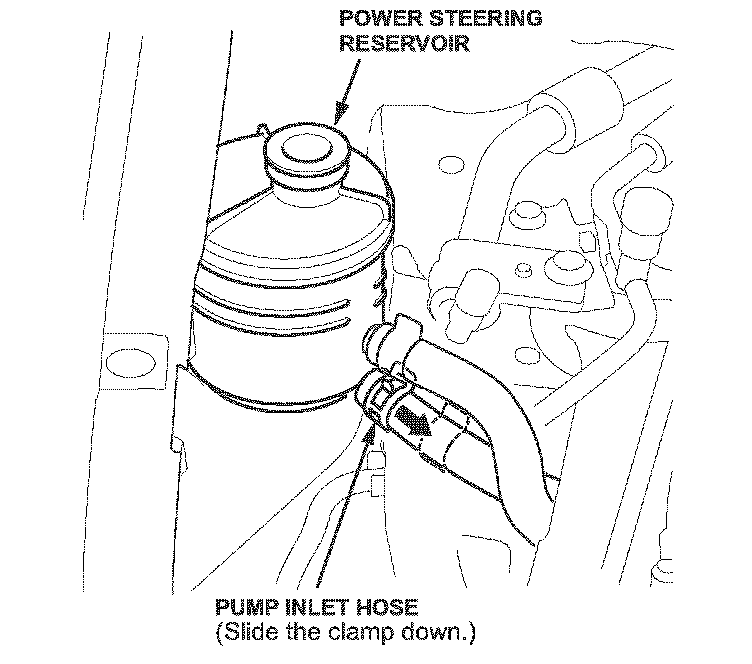 6. Lower the vehicle, then remove the pump inlet hose from the reservoir. Remove the pump inlet hose and inlet pipe from the vehicle.