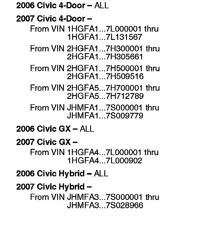 Civic, Civic GX, Civic Hybrid -