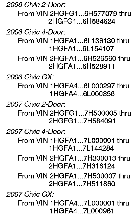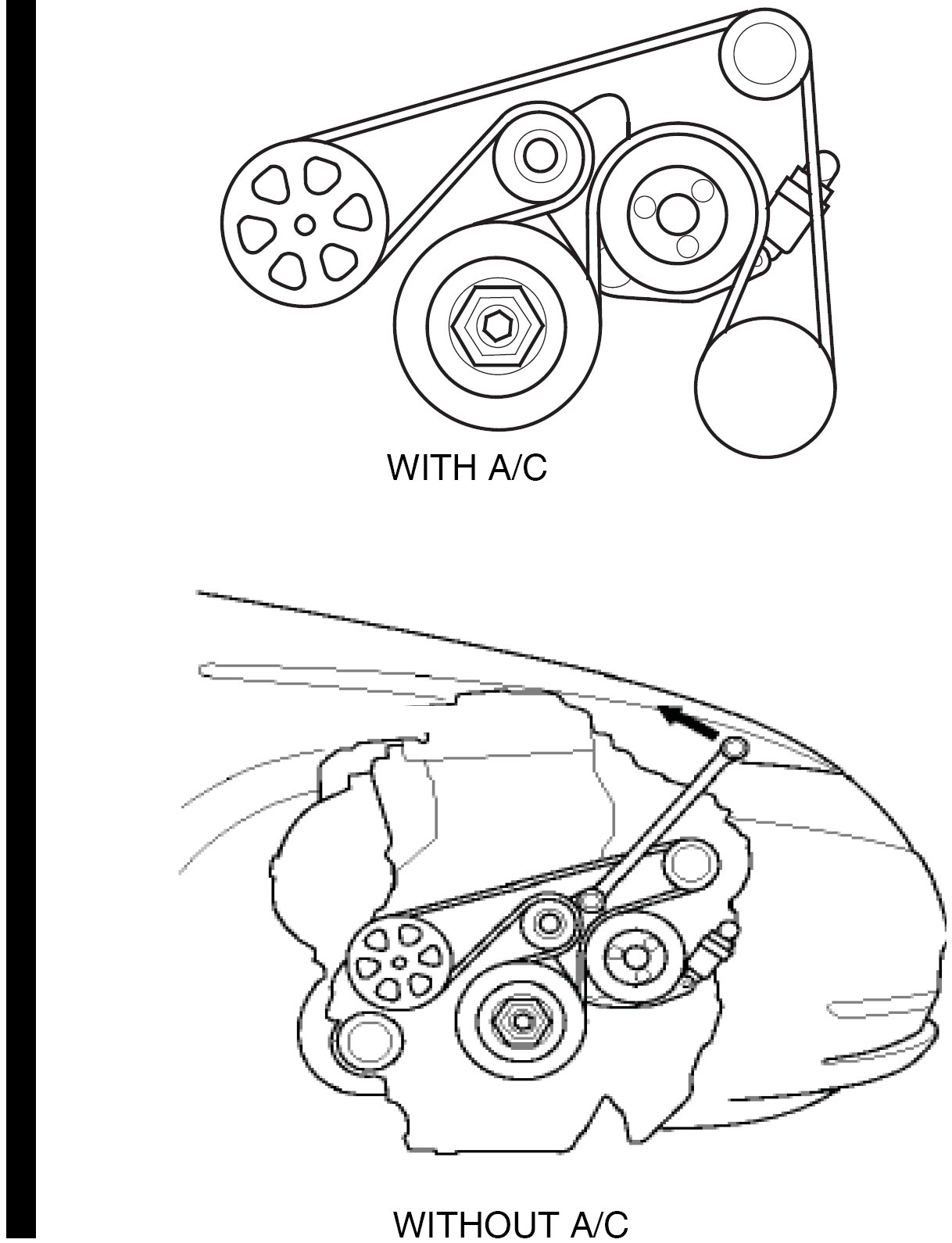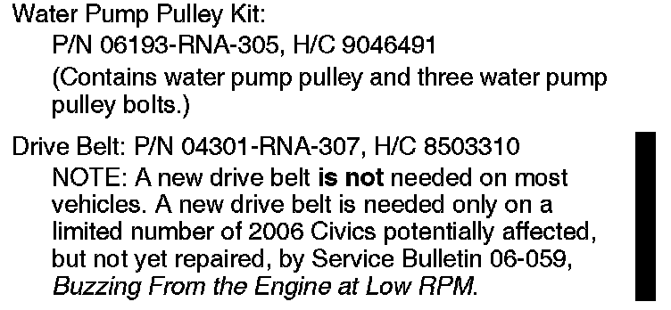If you're working on a 2006 Civic with A/C, and its drive belt is not routed as shown in the "WITH A/C" illustration, use a new drive belt (P/N 04301-RNA-307, H/C 8503310) when you complete the repair.*
