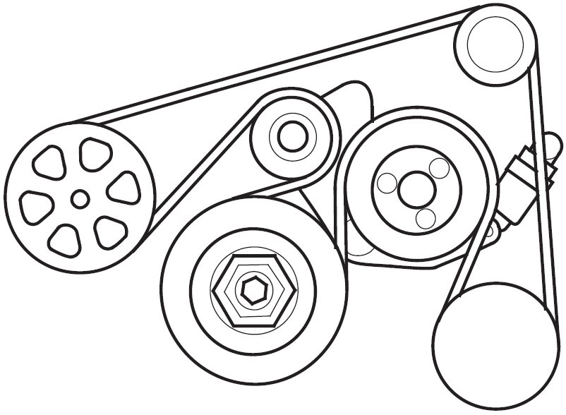 5. * On vehicles with A/C, route the drive belt around the engine pulleys as shown. On vehicles without A/C, route the original drive belt as shown in step 1.*