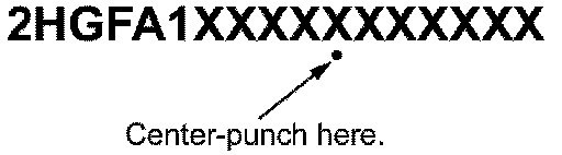 7. Center-punch a completion mark below the 11th character of the engine compartment VIN: