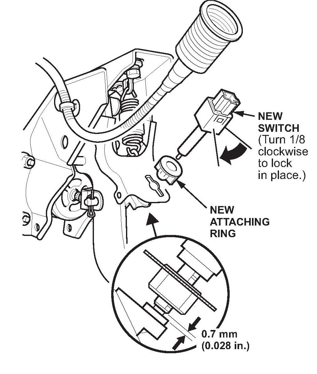 When you lock the switch into position, the clearance for the pedal stop bracket automatically adjusts to 0.7 mm (0.028 in.).