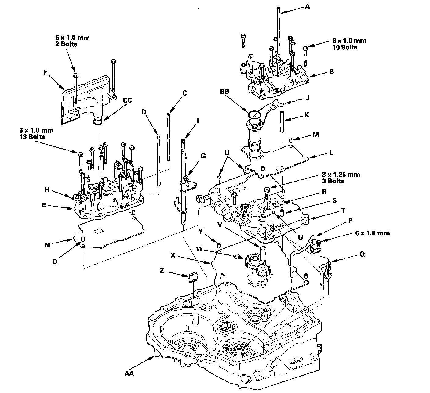 13. Remove the O-ring (BB) from the stator shaft, and remove the O-ring (CC) from the ATF strainer. Install the new ones when installing the valve bodies.
