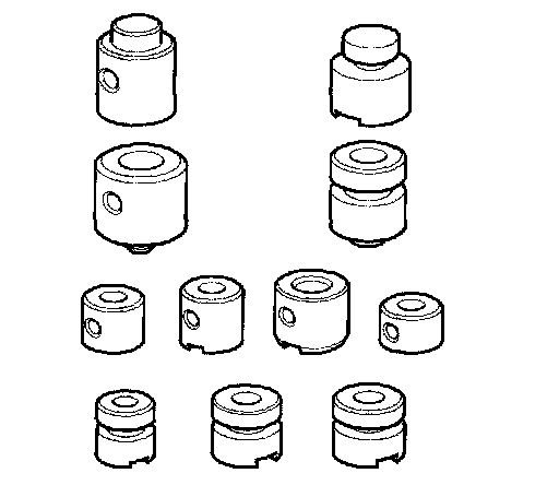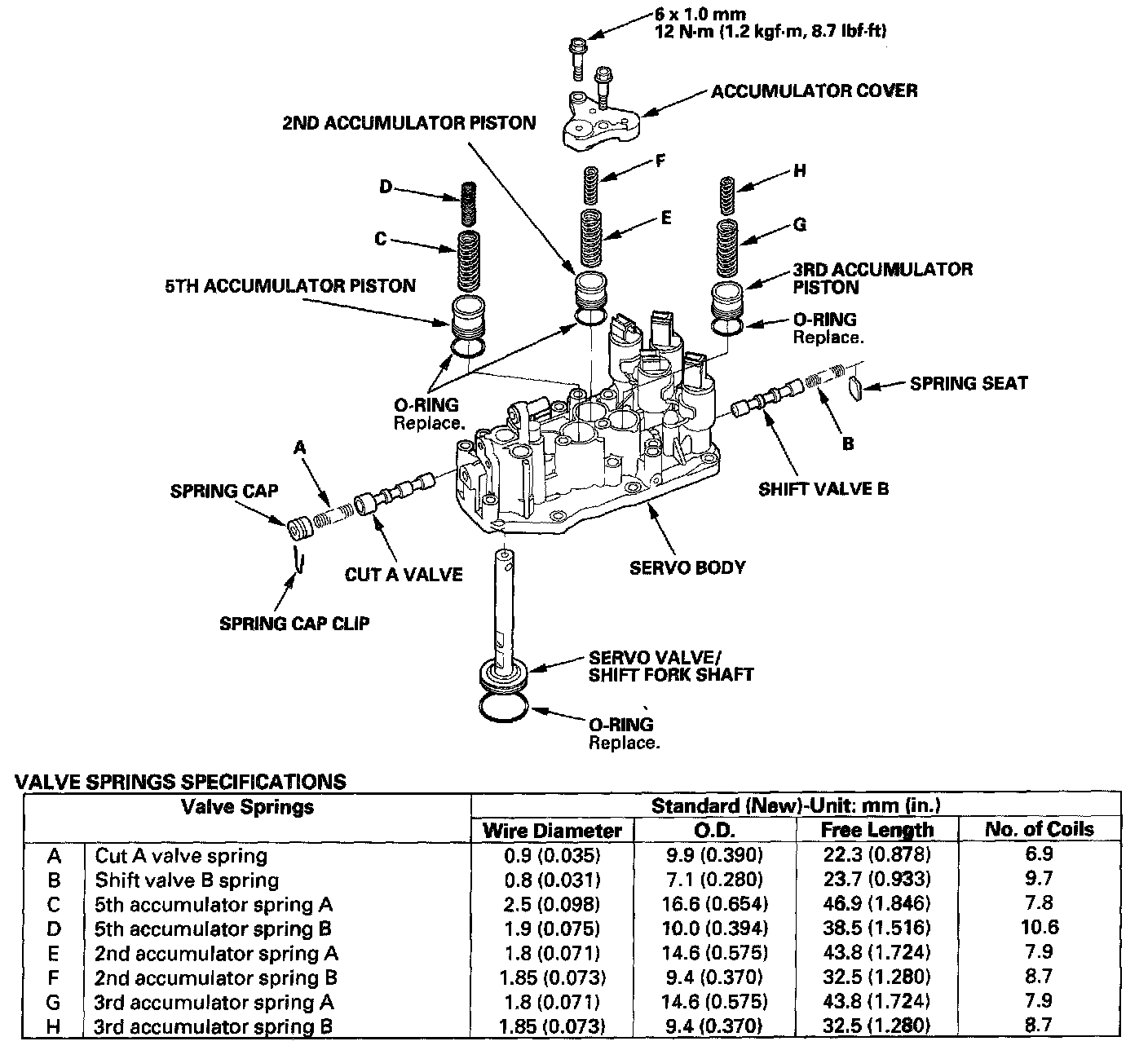 2. Install the valves and springs in the sequence shown for the main valve body, regulator valve body, and servo body. Refer to the following valve cap illustrations, and install each valve cap so the end shown facing up will be facing the outside of the valve body, then secure the valve cap with the valve cap clip.