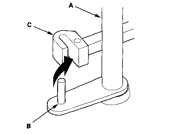 15. Install the selector control shaft (A) in the torque converter housing while aligning the manual valve lever pin (B) on the selector control shaft with the guide of the manual valve (C).