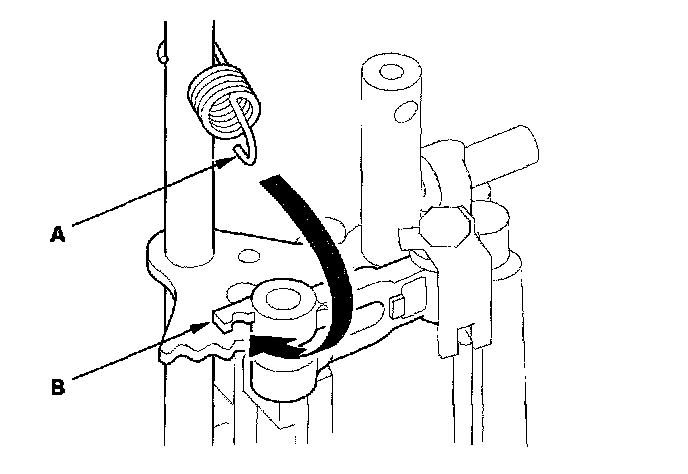 16. Hook the detent arm spring (A) to the detent arm (B).
